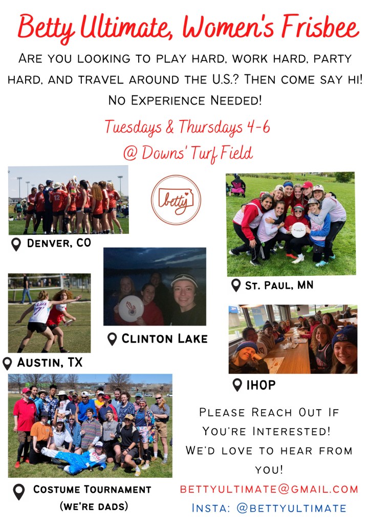 I have been a Betty since the Fall of 2022. In May of 2022, I was elected the Social Media and Photography Chair for the team and fufilled this role until January of 2023. This role included taking team and individual player photos, creating videos for alumni and prospective members, running the team’s Instagram, Twitter and Facebook, and designing promotional posters for the team.