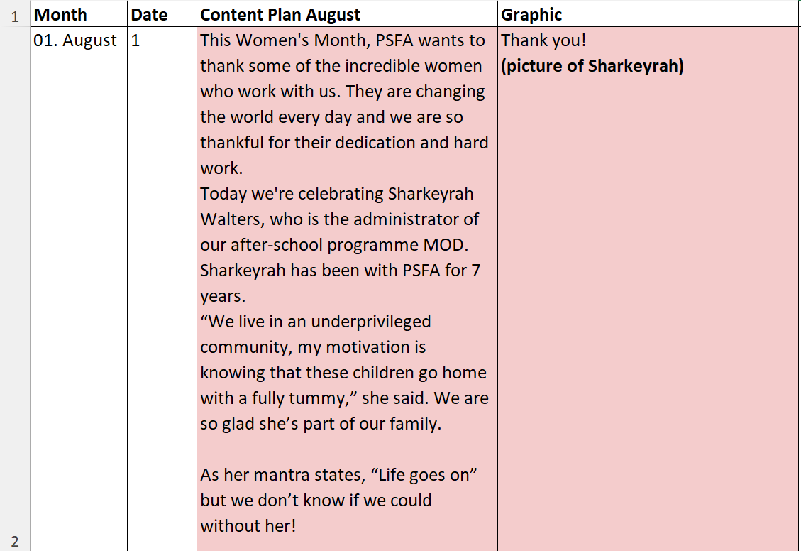 In celebrating Women’s Month 2023, I developed an appreciation campaign for the women who work at PSFA. The goal in doing this was to highlight some of the women who dedicate their time and energy to an incredible organization.