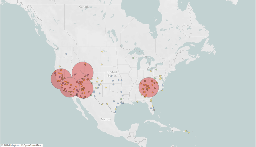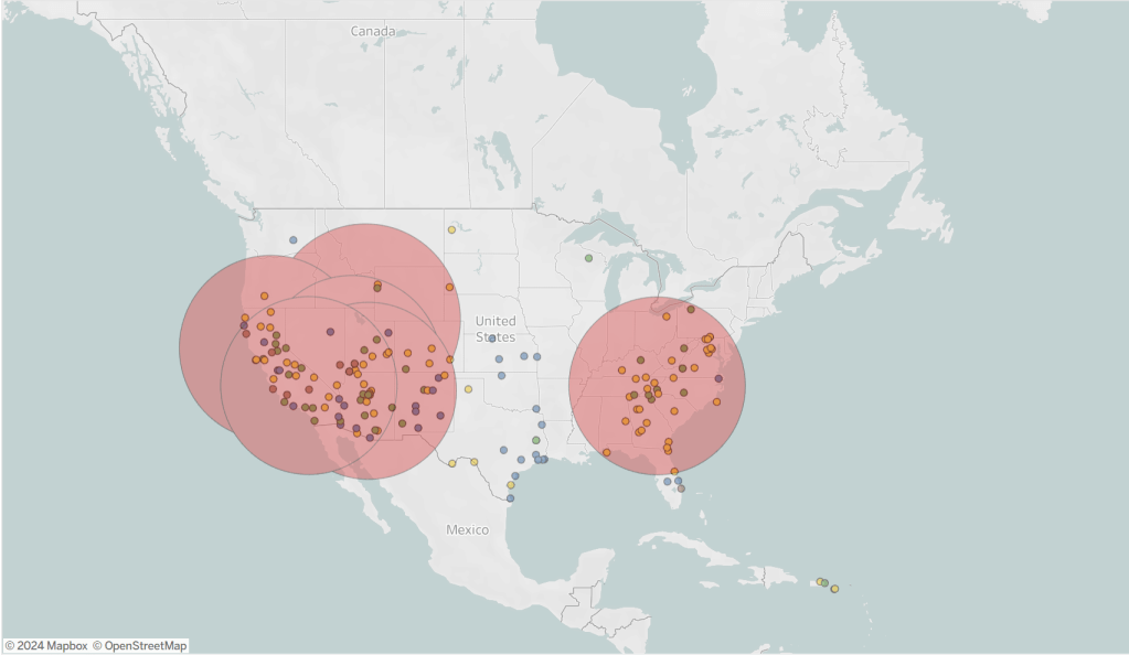 There were a few initial analyses that we knew we wanted to perform, the first being a 250 and 500-mile radius from the current ACE headquarters, specifically with Crew projects.